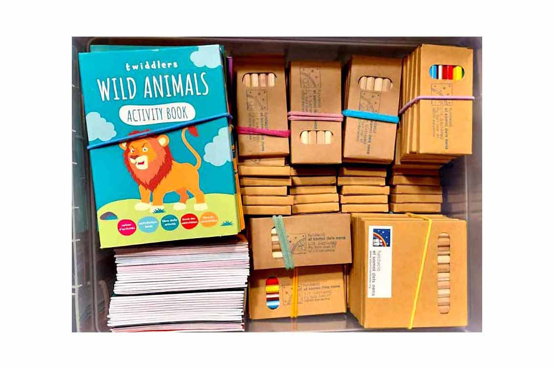 Hem proporcionat un lot de llibretes d’activitats i caixetes de colors, a l’hospital de Sant Pau, destinades a què el personal mèdic les pugui oferir als infants que acudeixin a urgències.