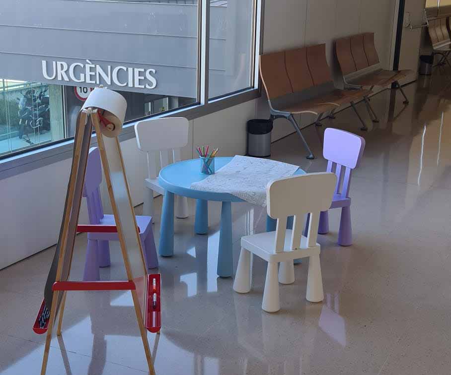 Hem donat una taula, diverses cadires i una pissarra per ajudar a humanitzar la sala d’espera de les consultes d’otorrinolaringologia pediàtrica de l’hospital de Sant Boi, amb l’objectiu és fer més amena i agradable l’espera dels infants mentre esperen per ser atesos, oferint-los un espai pensat especialment per a ells, on puguin distreure’s i sentir-se més còmodes.
